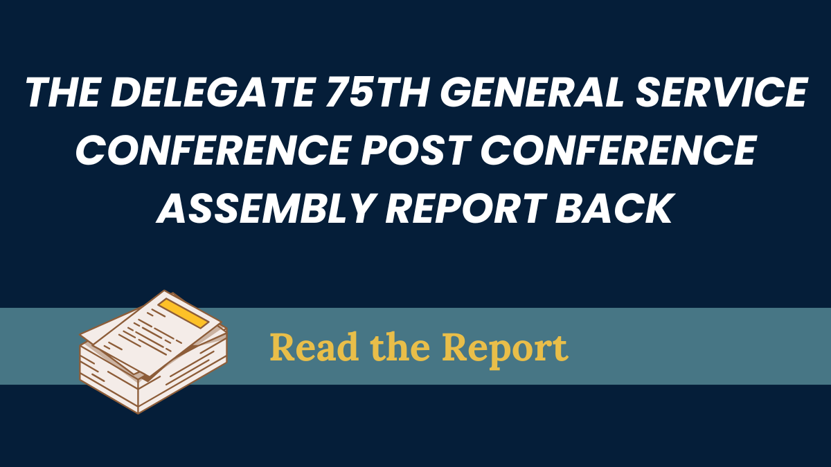 Our Delegate provides regular news and updates and in the “Delegate’s Corner” section of this site. Visit the Delegate’s Corner to learn more about the latest news about AA in New Hampshire and across the country.