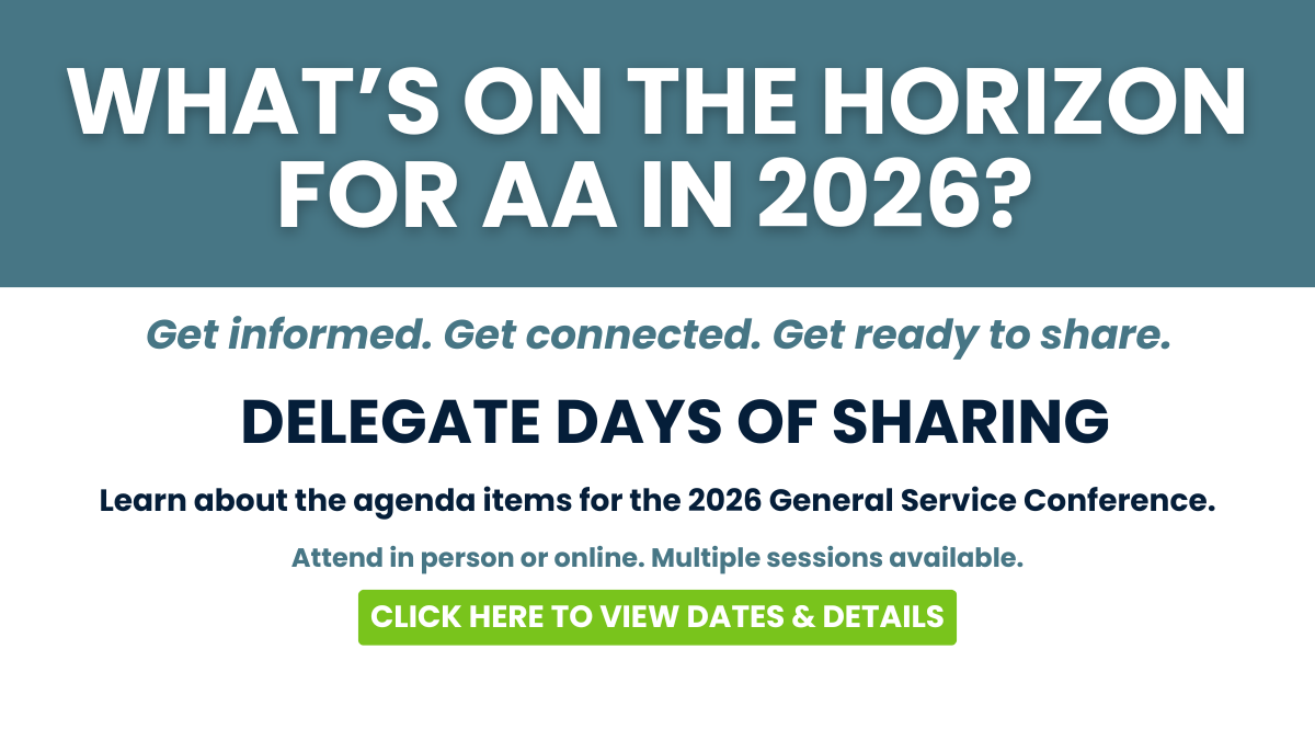 Our Delegate serves as the vital link between our local AA groups and the General Service Conference, where decisions affecting AA as a whole are made each year. To fulfill […]