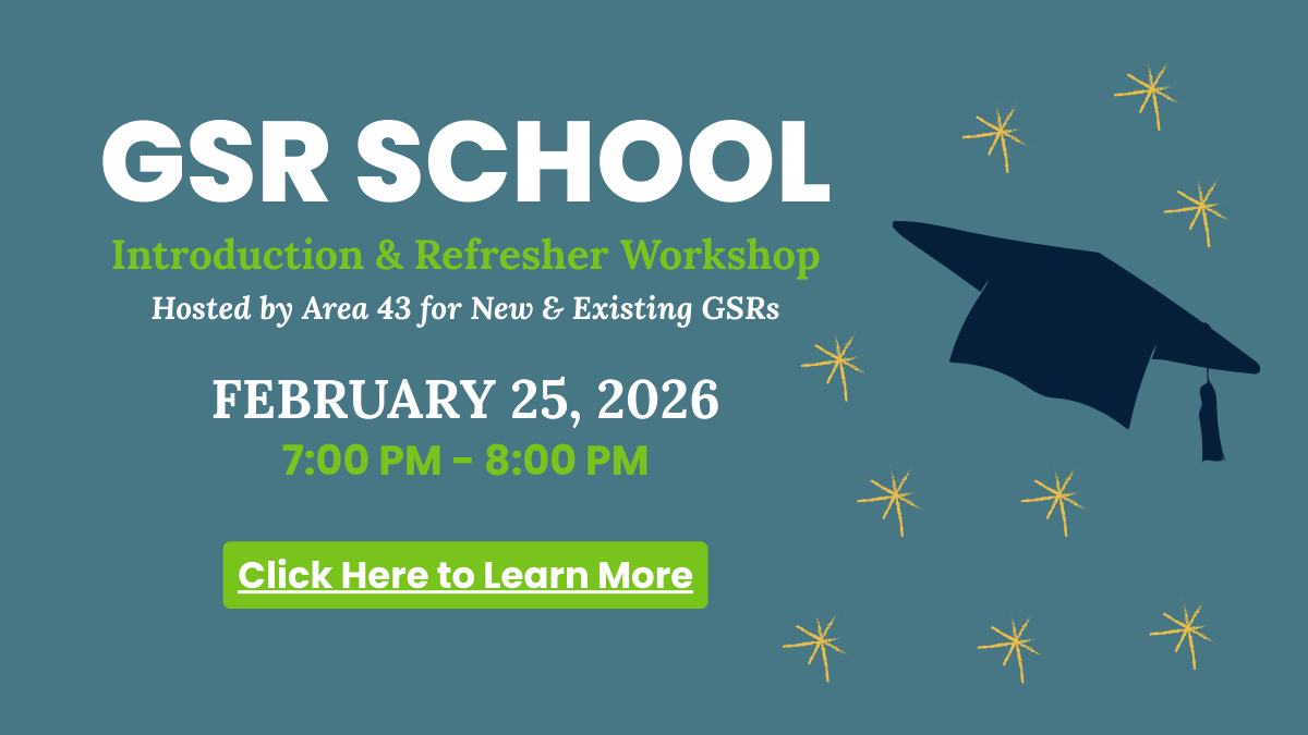 Holiday and New Year wishes to everyone as Area 43 launches into a brand-new year with a brand-new Panel 76! Your Area was well represented at the Northeast Regional Forum […]