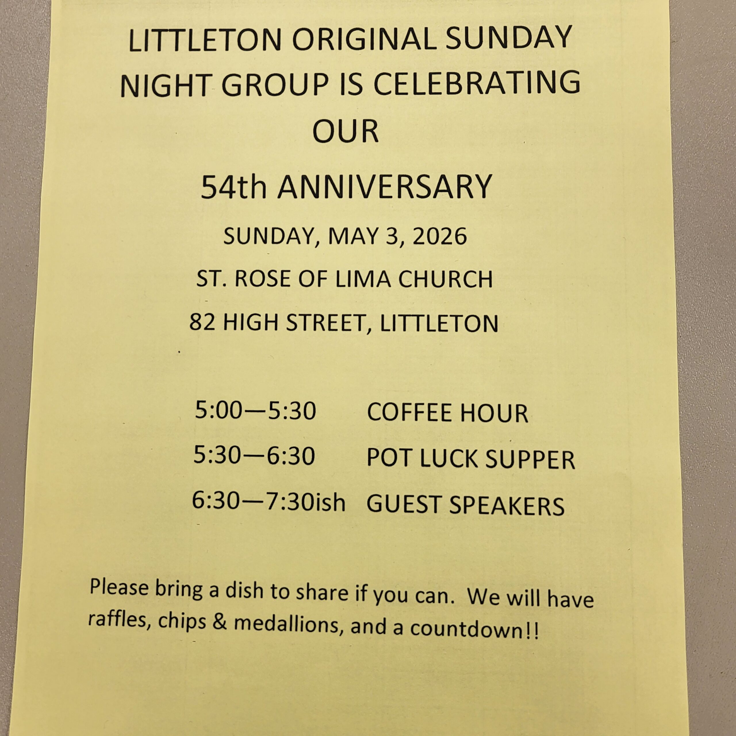 The Littleton Original's Group is celebrating our 54th Anniversary on Sunday May 3rd at the Saint Rose of Lima Church, 82 High Street in Littleton. Come join us for coffee, […]